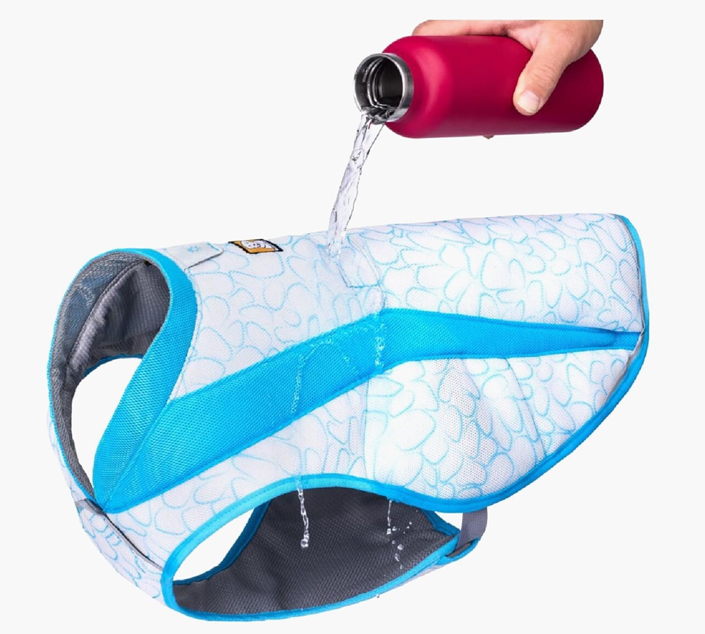 - RUFFWEAR Swamp Cooler Harness – Evaporative cooling vest; soak it in water for hours of temperature relief.